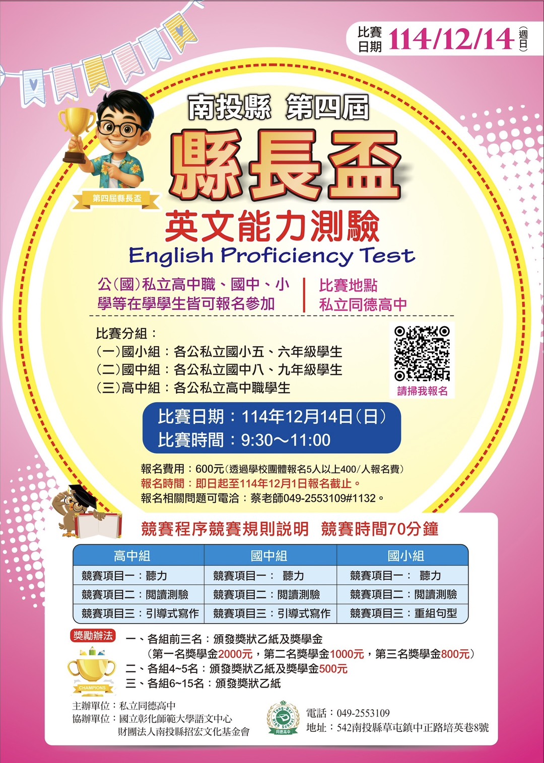 南投縣第四屆縣長盃中小學生英文閱讀測驗暨引導式寫作比賽