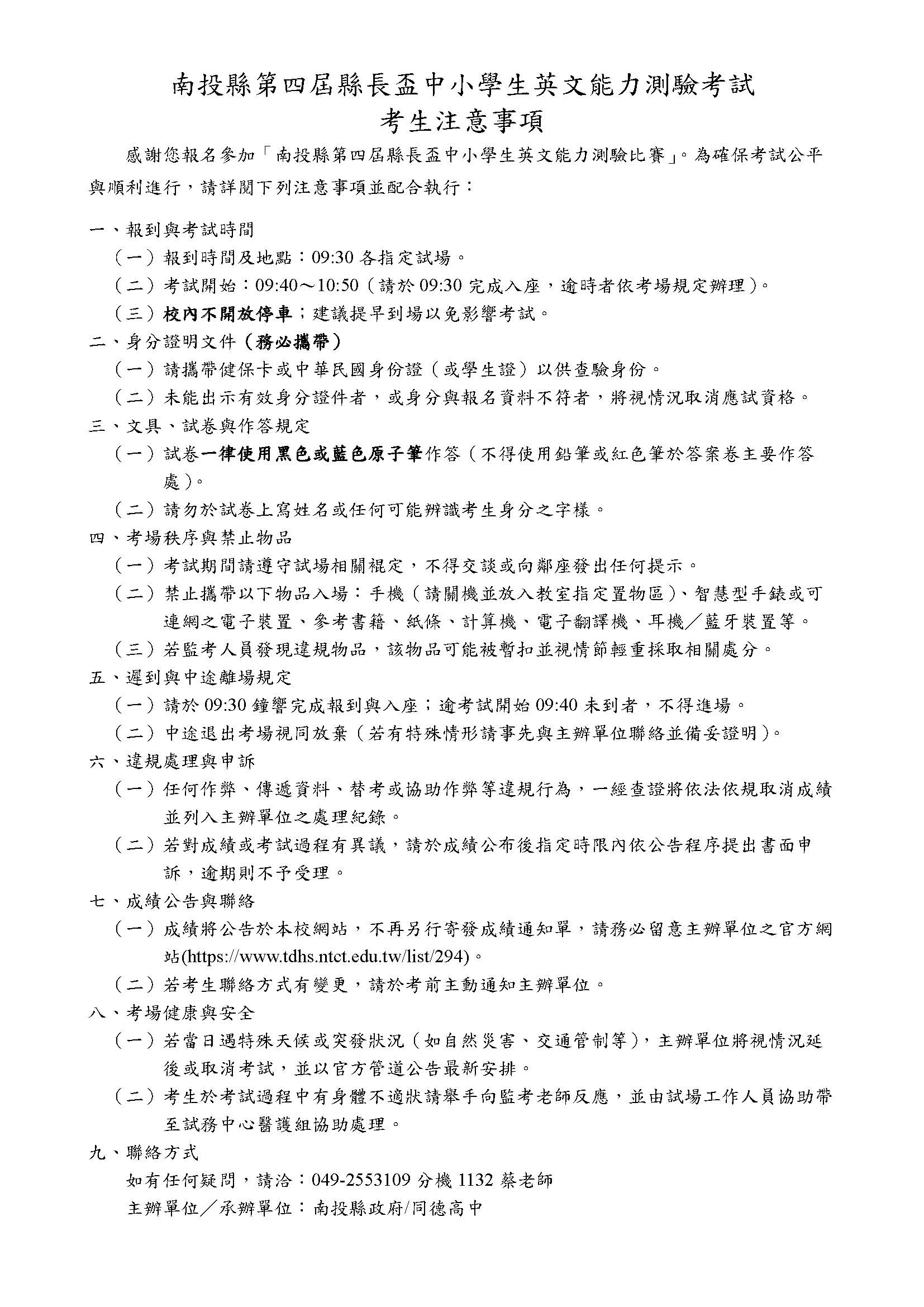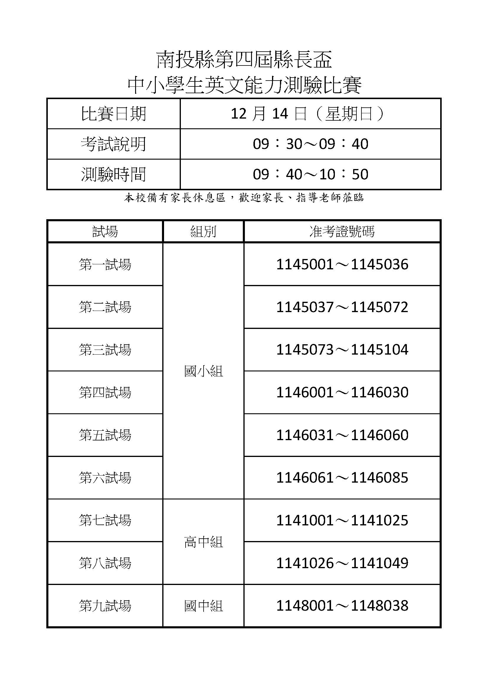 南投縣第四屆縣長盃中小學生英文閱讀測驗暨引導式寫作比賽